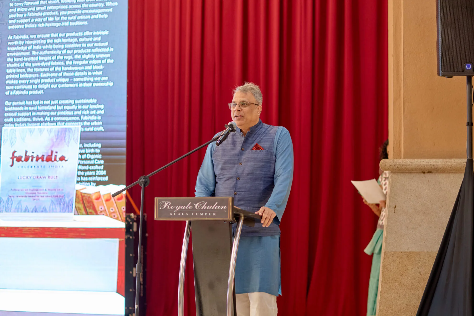 Majlis kali ini memang lain macam. Kehadiran wakil-wakil tertinggi dari ibu pejabat Fabindia di India termasuk Mr Ajay Kapoor, Presiden Runcit Fabindia HQ sendiri, menambahkan lagi aura antarabangsa acara ini. Kami turut berpeluang melihat sendiri YB Tuan M. Kula Segaran, Timbalan Menteri di Jabatan Perdana Menteri; Ms Shubashini Narayanan, Timbalan Duta; serta tokoh-tokoh korporat terkenal seperti Dato Vikness Raju.