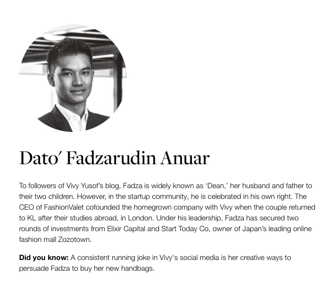 Bermula dari sahabat karib dan menjadi suami isteri, kisah kedua – dua usahawan ini cukup menarik. Dengan menggunakan perbelanjaan sendiri hampir 100 ribu, mereka tekad untuk mengembangkan perniagaan FashionValet, yang dahulunya bermula hanya dengan 10 jenama tempatan. Bukan itu sahaja, Vivy Yusof juga pernah mengharumkan negara apabila satu-satunya wanita yang berhijab yang terpilih untuk mengenakan jenama mewah terkenal, Louis Vuitton.
