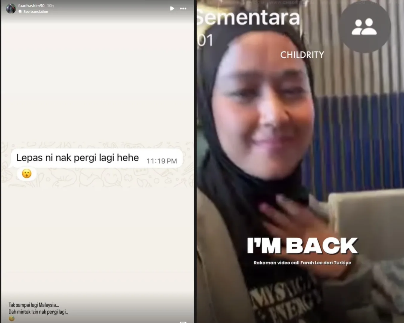 Menerusi Instagram Stories di akaun peribadinya, Fuad memuat naik tangkap layar daripada isterinya yang meminta izin untuk menyertai misi kemanusiaan seterusnya selepas pulang ke Malaysia.