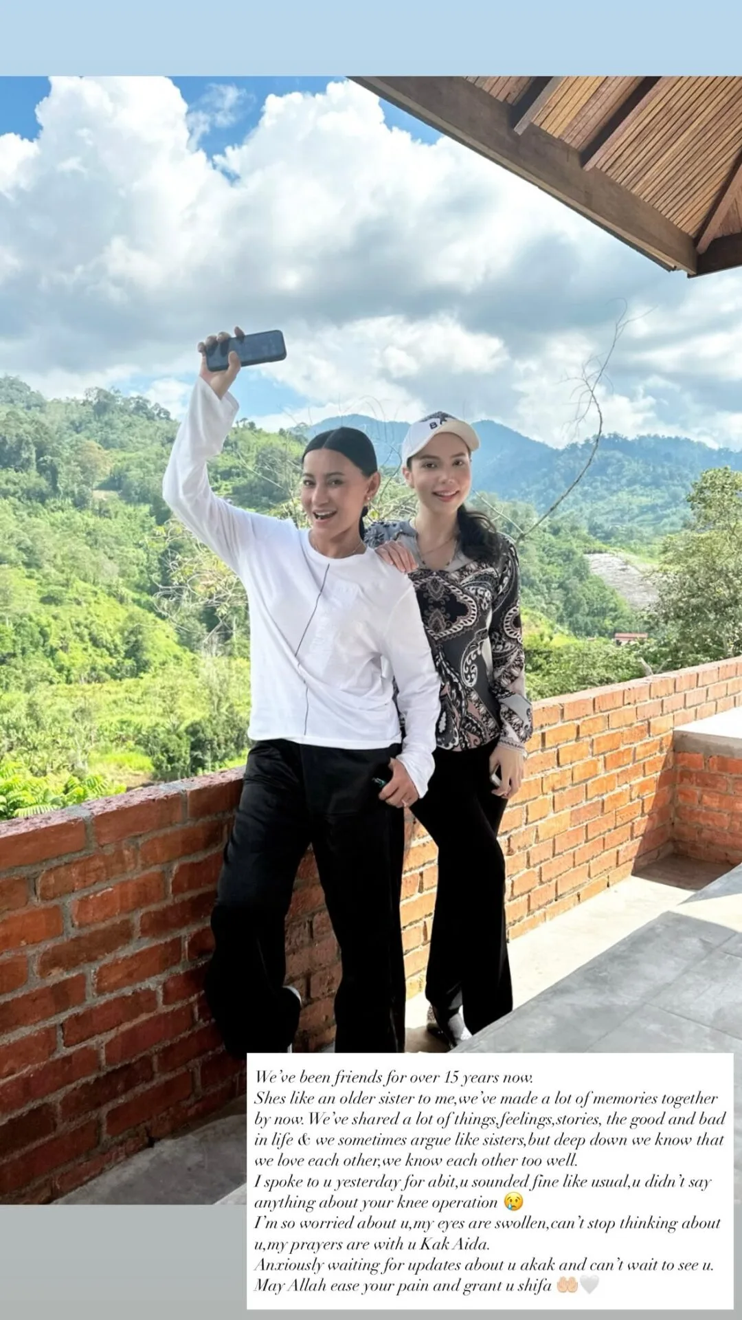 “Saya nak minta tolong doakan kesembuhan buat kakakku A. Aida. Saya difahamkan beliau berada di ICU sekarang ni. Saya sendiri tak dapat jumpa lagi buat masa ni. Menggigil tangan masa dapat tau berita ni tadi sebab saya tak pernah nampak dia sakit.