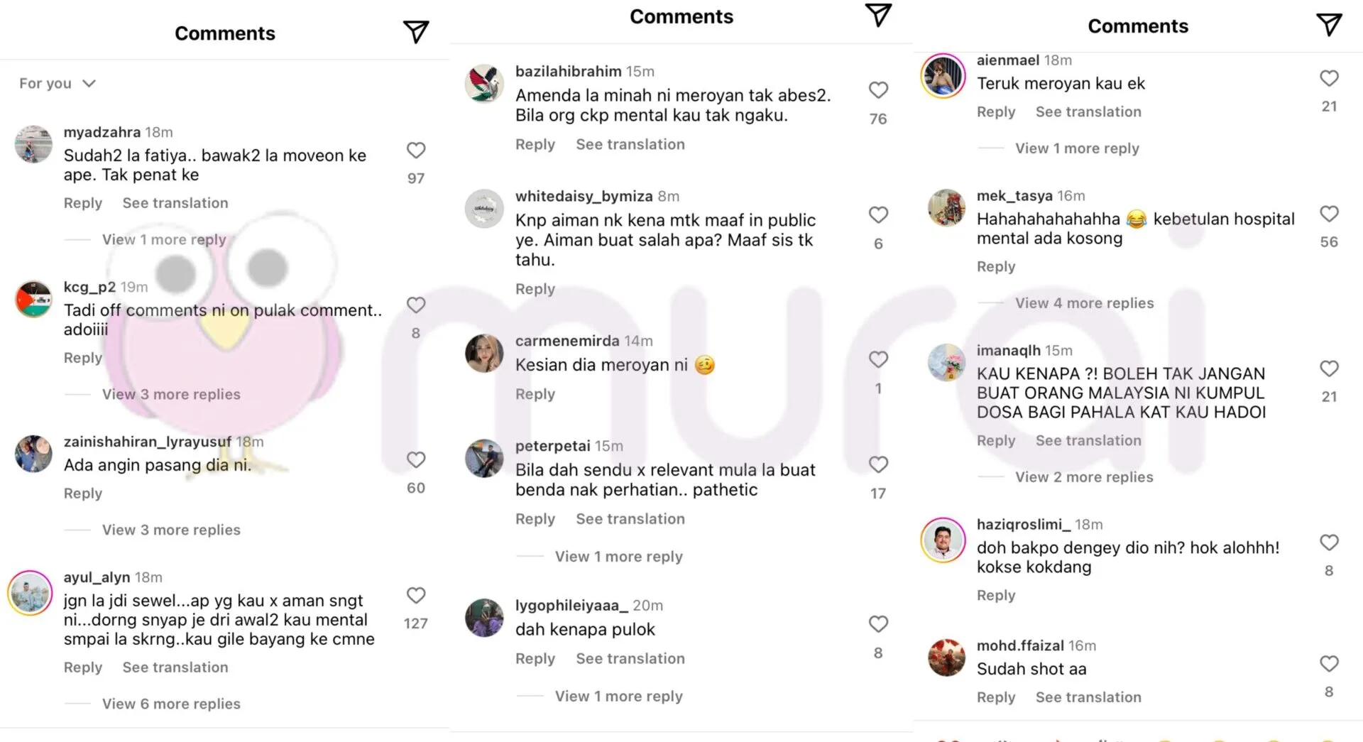 “Amenda la minah ni meroyan tak habis-habis. Bila orang cakap mental kau tak ngaku.”