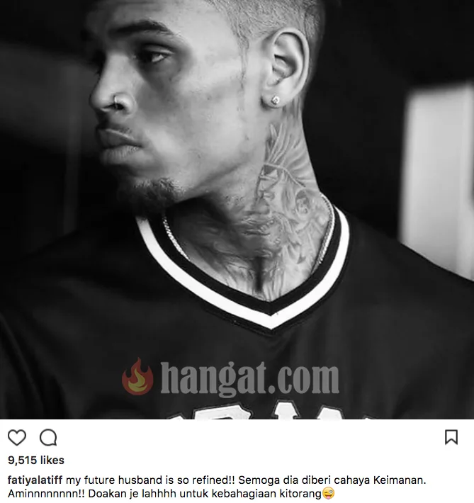 Dia memuat naik gambar wajah penyanyi dan pelakon dari Amerika, Chris Brown dan menulis kapsyen dengan yakin bahawa jejaka ini bakal menjadi suaminya suatu masa nanti. Fatiha juga berharap supaya jejaka ini diberi cahaya keimanan dan meminta peminatnya supaya mendoakan kebahagiaan mereka berdua. Macam kelakar kan?
