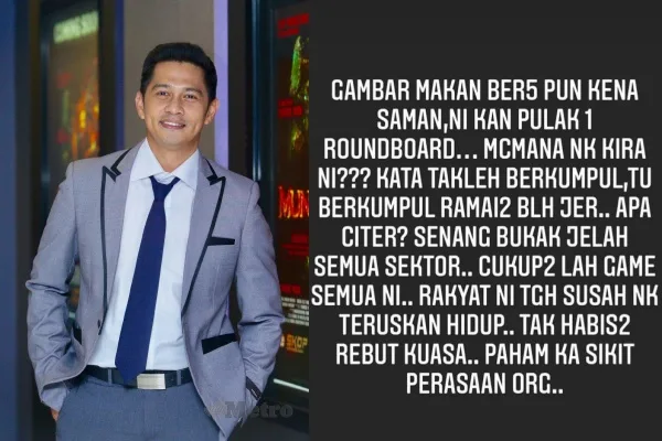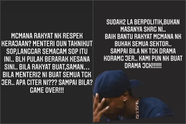 “Kata tak boleh berkumpul, tu berkumpul ramai-ramai boleh jer. Apa citer? Senang bukak jelah semua sektor. Rakyat tengah susah nak teruskan hidup. Tak habis-habis rebut kuasa”, tulisnya.
