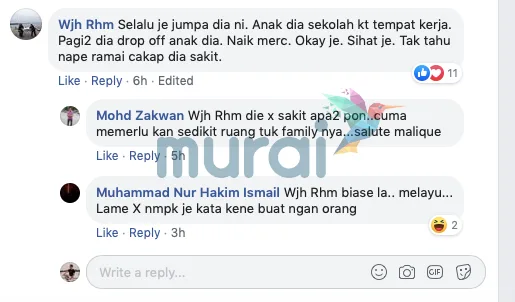 Menerusi komen yang lain pula, terdapat pengguna yang akui sering kali melihat penyanyi itu menghantar anaknya ke sekolah dan berada dalam keadaan sihat. Apa pun diharap Malique akan terus sukses!