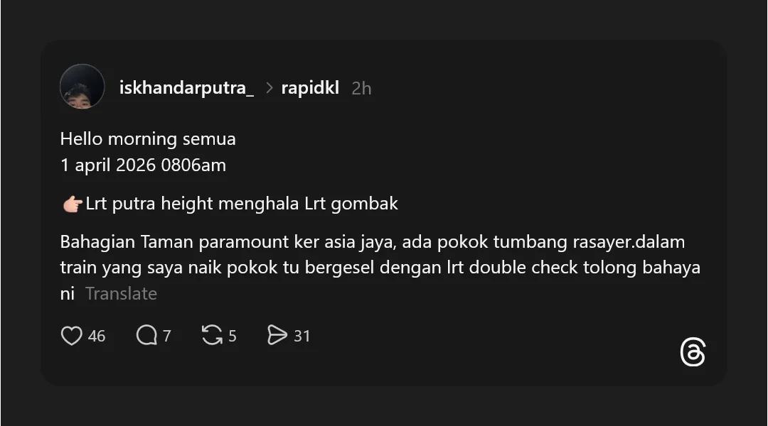 Perkongsian di Thread tersebut segera menarik perhatian ramai kerana ia melibatkan aspek keselamatan penumpang.