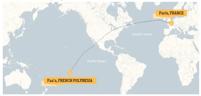 Syarikat penerbangan itu terbang dari Papeete, Polinesia Perancis ke Paris, Perancis dengan jarak 9,775 batu dan masa perjalanan 15 jam 45 minit.