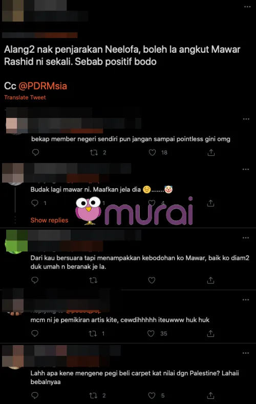 Bagaimanapun, komen tersebut telah disalah erti oleh sesetengah pihak yang menganggap Mawar seperti menyebelahi Neelofa selain turut dikatakan kurang bijak kerana tidak memahami situasi kini.