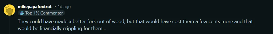 Isu ini menunjukkan bahawa perkara kecil seperti rekaan garfu juga boleh memberi kesan terhadap persepsi pengguna. Walaupun produk utama masih menjadi pilihan ramai, pengalaman penggunaan secara keseluruhan kekal penting dalam mengekalkan kepercayaan dan kesetiaan pengguna.