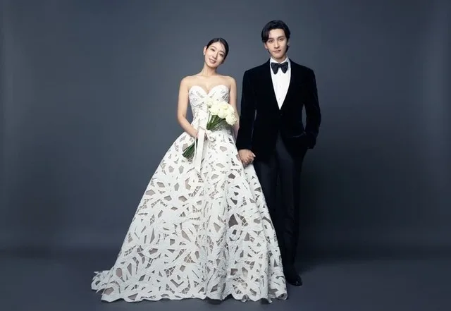 Park Shin Hye mengenakan 3 pakaian yang berbeza dalam foto pra-perkahwinan mereka.