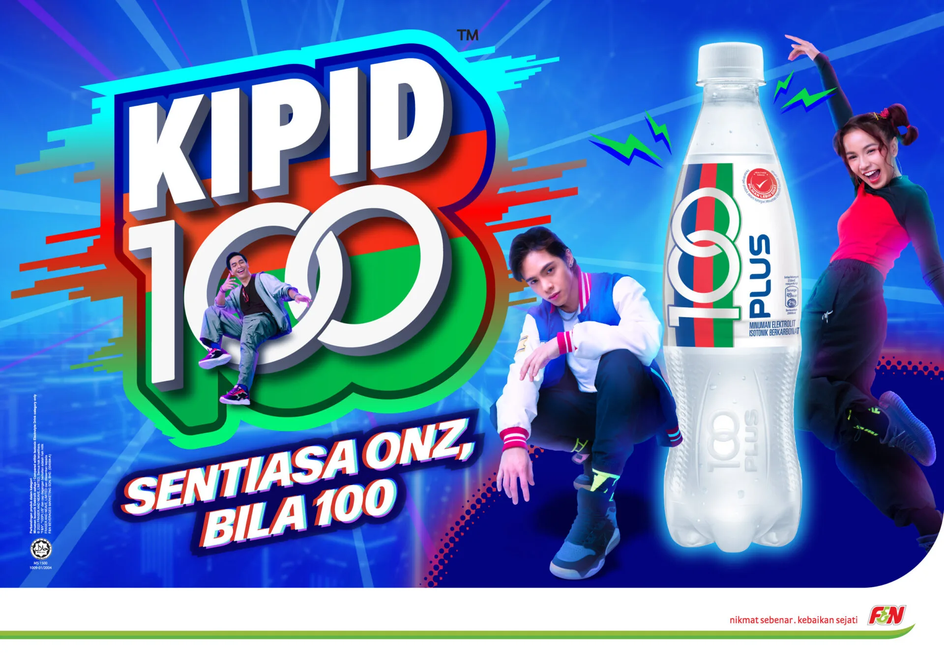Bertemakan kemeriahan, kekuatan dan kesegaran, iklan tersebut telah memaparkan sebuah komersial yang dinamik dan sesuai dengan gaya dan trend Generasi Z!. Gazelle Activation, Shopper360 dan 100PLUS juga telah berkejasama dengan Dato’ Muhammad Azizulhasni bin Awang, pelumba basikal terkenal Malaysia dan Jared Lee, penerbit filem dan penulis kesayangan rakyat Malaysia. Kedua-dua mereka telah memperolehi kejayaan yang membanggakan setelah melalui kepayahan yang perit, selari dengan semangat KIPID100!