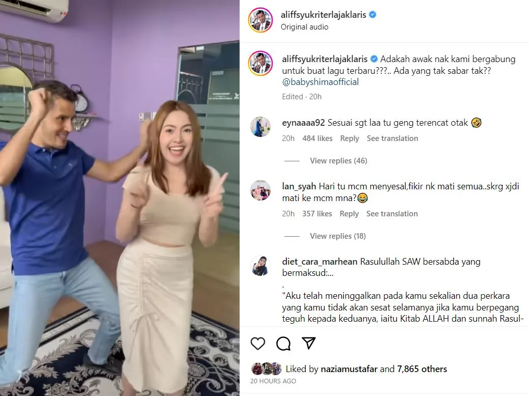 Netizen bagaimanapun kembali mengingatkan Aliff Syukri tentang luahannya sebelum ini yang dikatakan mahu bertaubat dan mula berfikir tentang kematian.
