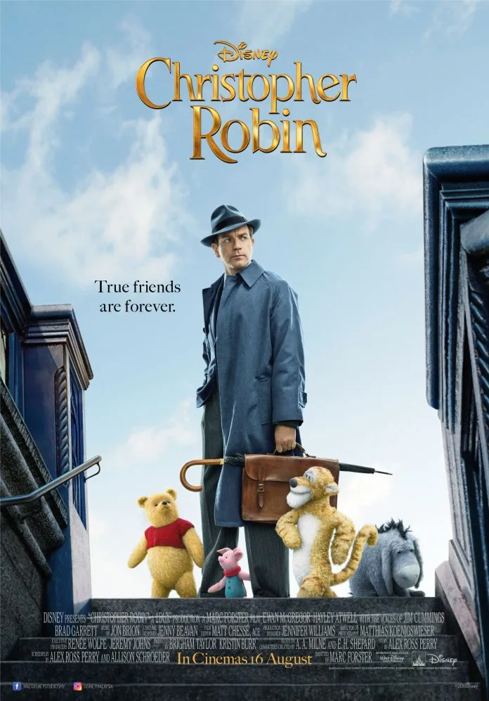 Disney’s “Christopher Robin” adalah filem komedi drama fantasi Hollywood yang diarahkan oleh Marc Forster. Filem ini mengambil inspirasi dari buku A. A. Milne dan E. H. Shepard, Winnie-the-Pooh.