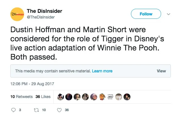 7.Dustin Hoffman, Alan Tudyk, dan Martin Short semuanya pernah dipertimbangkan untuk mengisi suara Tigger