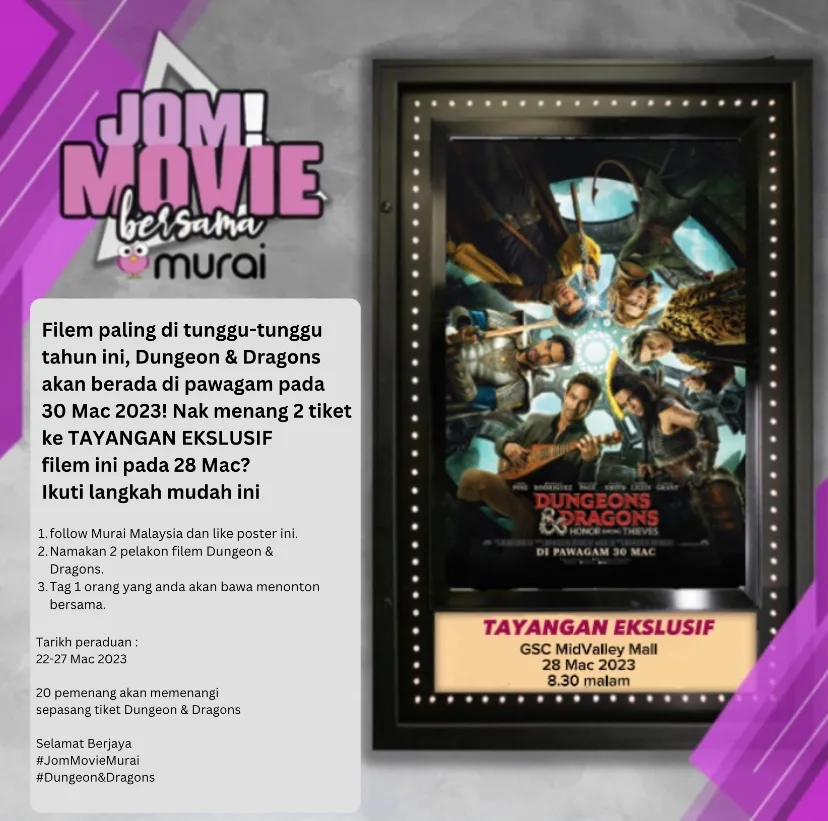 Jadi apa yang anda tunggu lagi? sertai peraduan ini untuk memenangi tiket tayangan eksklusif filem Dungeons & Dragons.