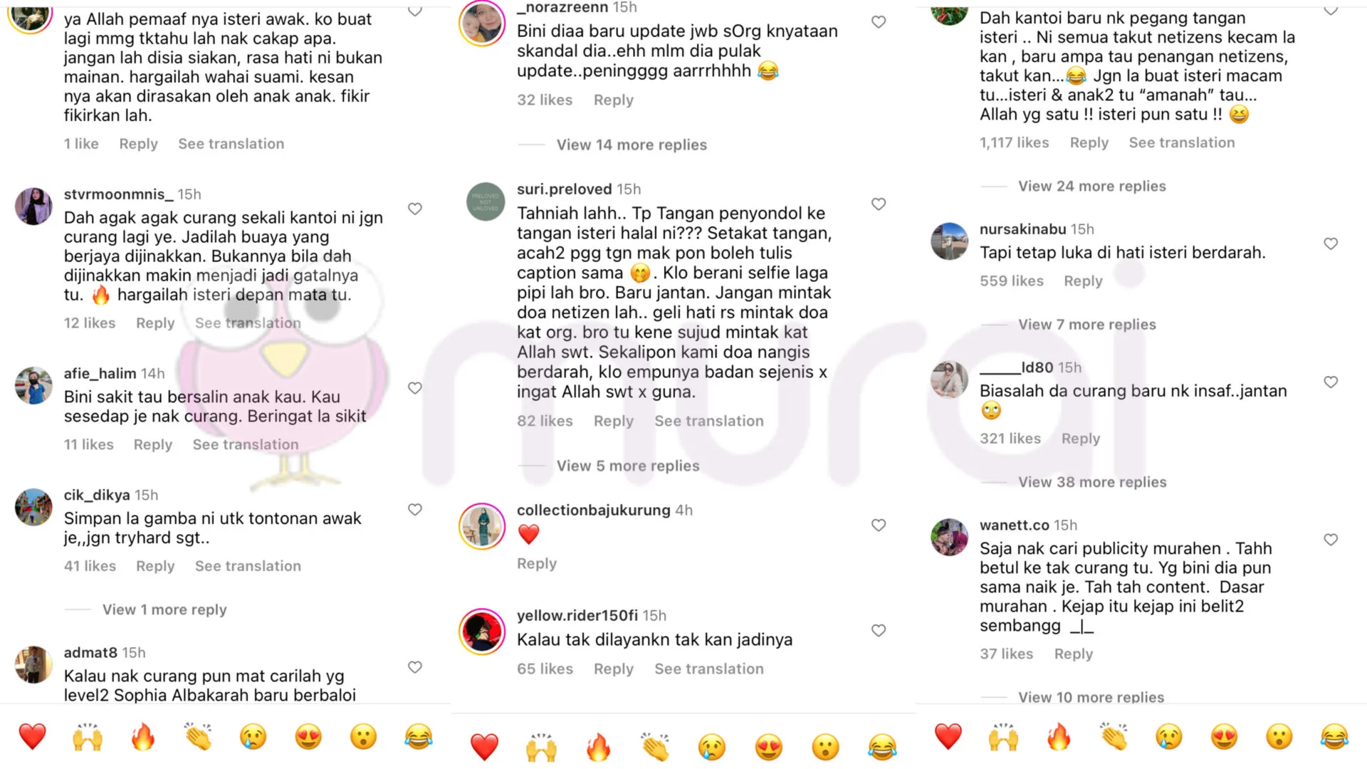 Tinjauan Murai MY di ruangan komen mendapati, rata-rata natizen dilihat memberikan pelbagai reaksi mereka, malah ada yang memberikan teguran buat Hafidz agar tidak lagi melukakan hati isterinya lagi.