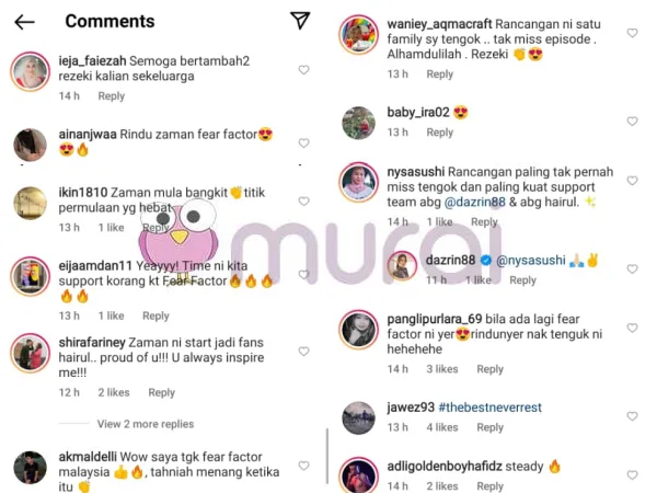 Dan rata-rata ramai yang mengatakan rasa rindu dengan zaman Fear Factor, ada juga yang memberi komen rasa bangga melihat pencapaian Hairul dan Dazrin pada waktu itu.