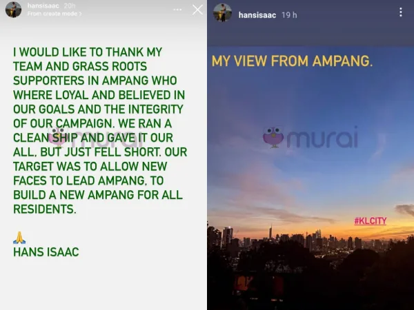 Mengintip di media sosial Hans pula, beliau mengucapkan terima kasih kepada pasukan dan penyokong setianya yang menjadi tulang belakang serta kekuatan kepada beliau untuk bertanding bagi merebut jawatan Ketua Cabang PKR bagi kawasan Ampang.