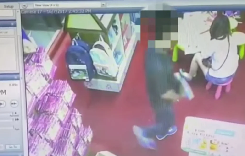 Berdasarkan rakaman CCTV, lelaki dengan kemeja hitam ini berdiri di belakang wanita itu ketika mangsa sedang leka membaca bukunya. Melihat bagaimana mangsa tidak memberi perhatian kepada persekitarannya, lelaki itu mula lakukan onani dan menggunakan buku untuk menutup dirinya dari pandangan orang luar.
