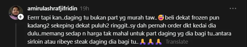 Kata seorang lagi netizen, sambil menambah bahawa harga RM35 mungkin masih munasabah bergantung kepada jenis dan kualiti daging.