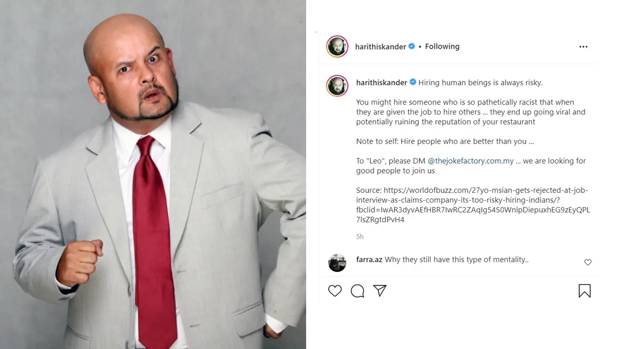 Baru-baru ini satu perkongsian dari Harith Iskander mengenai isu perkauman di dalam Malaysia mendapat perhatian warga net. Dalam perkongsian tersebut, Harith membidas tindakan pihak restoran yang menolak orang india untuk bekerja di restoran tersebut.