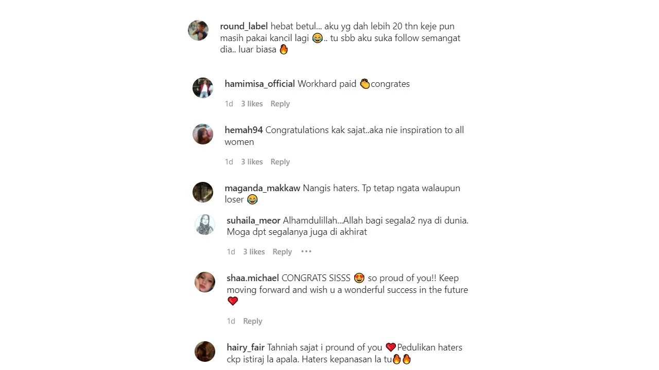 Dalam ruangan komen Sajat, ramai netizen yang mengucapkan tahniah dan memuji kemampuannya untuk membeli kereta tersebut walaupun baru saja menetap di Australia.