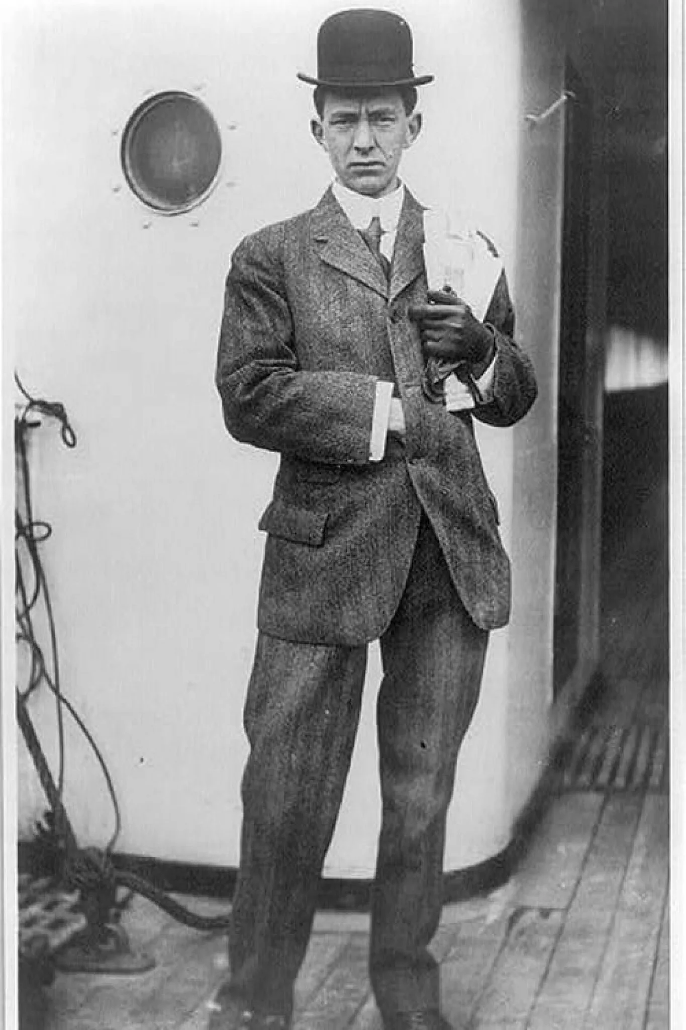 Kapten Titanic Edward J. Smith (Disebelah kanan) dan superintendent Hugh Walter McElroy bergambar di atas dek Titanic.