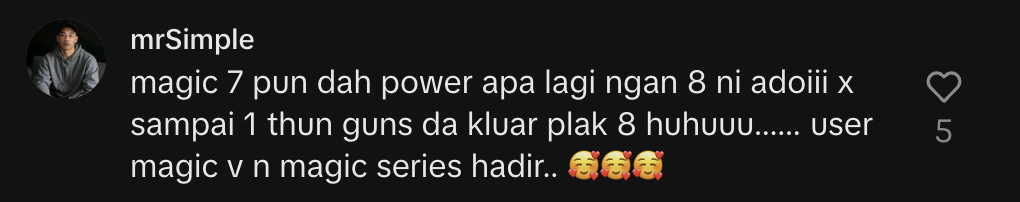 HONOR baru saja melancarkan Magic8 Pro dan netizen memang tak sabar nak kongsi pendapat mereka! Di laman rasmi TikTok HONOR Malaysia, ramai meninggalkan komen positif, terutamanya tentang kamera yang dikatakan “memang lawa dh cantik kalah iPhone”. Ramai bersetuju, telefon ini bukan sahaja setanding malah ada yang kata boleh lawan iPhone terbaru.