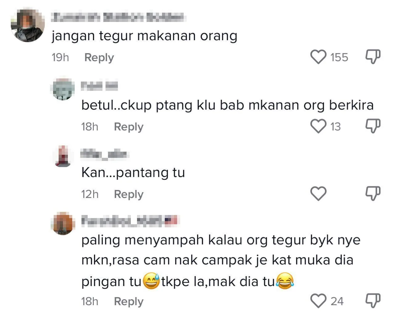 “paling menyampah kalau orang tegur banyaknya makan, rasa macam nak campak je kt muka dia pinggan tu, takpe la mak dia tegur tu….” – netizen
