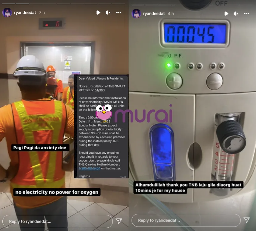 Susulan itu, Ryan turut berhadapan dengan detik cemas selepas kediaman mereka terputus bekalan elektrik dan membuatkannya berasa risau dengan keadaan ibu yang bergantung kepada mesin pernafasan. Bagaimanapun, menurut Ryan keadaan kembali terkawal tidak lama kemudian.