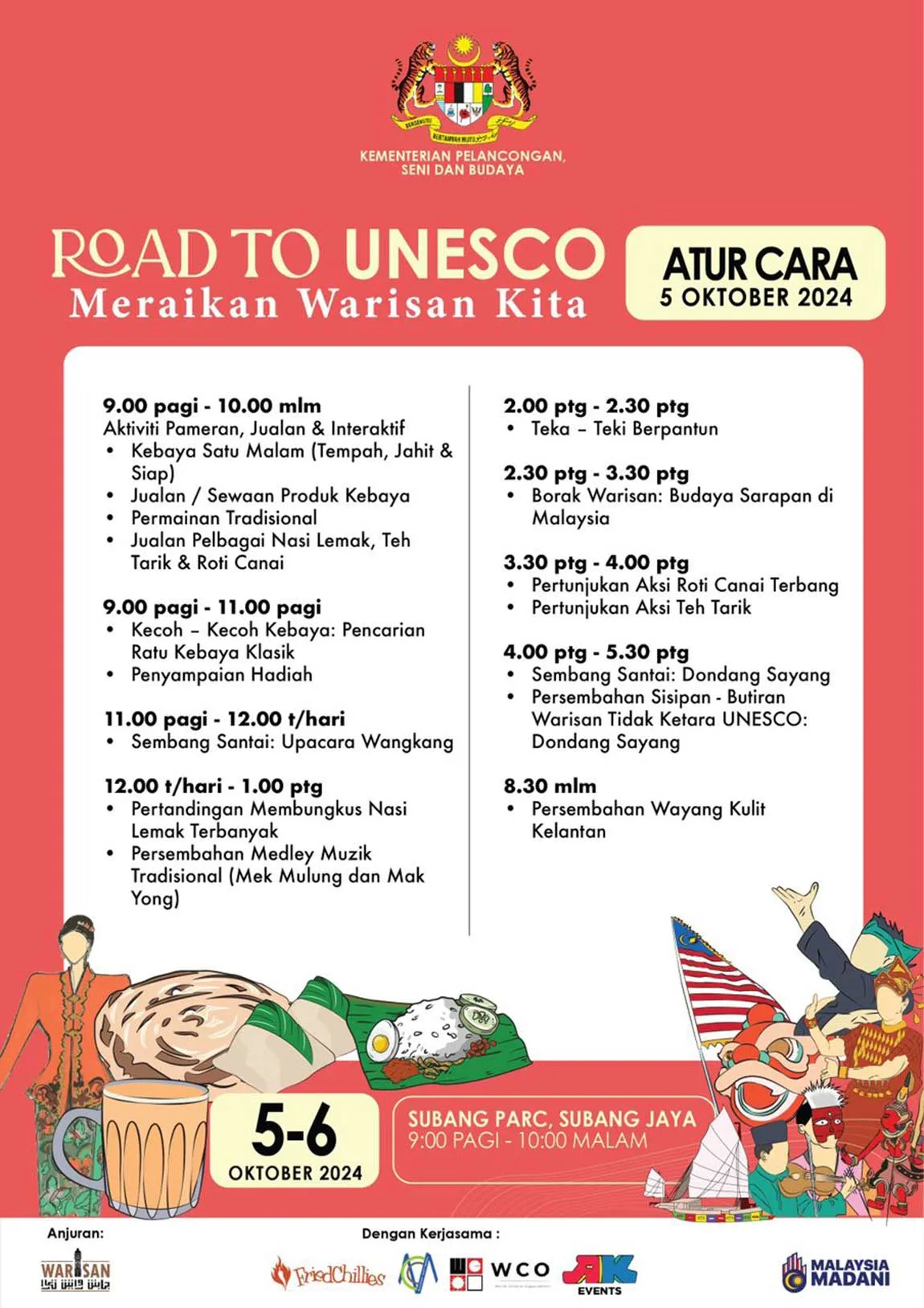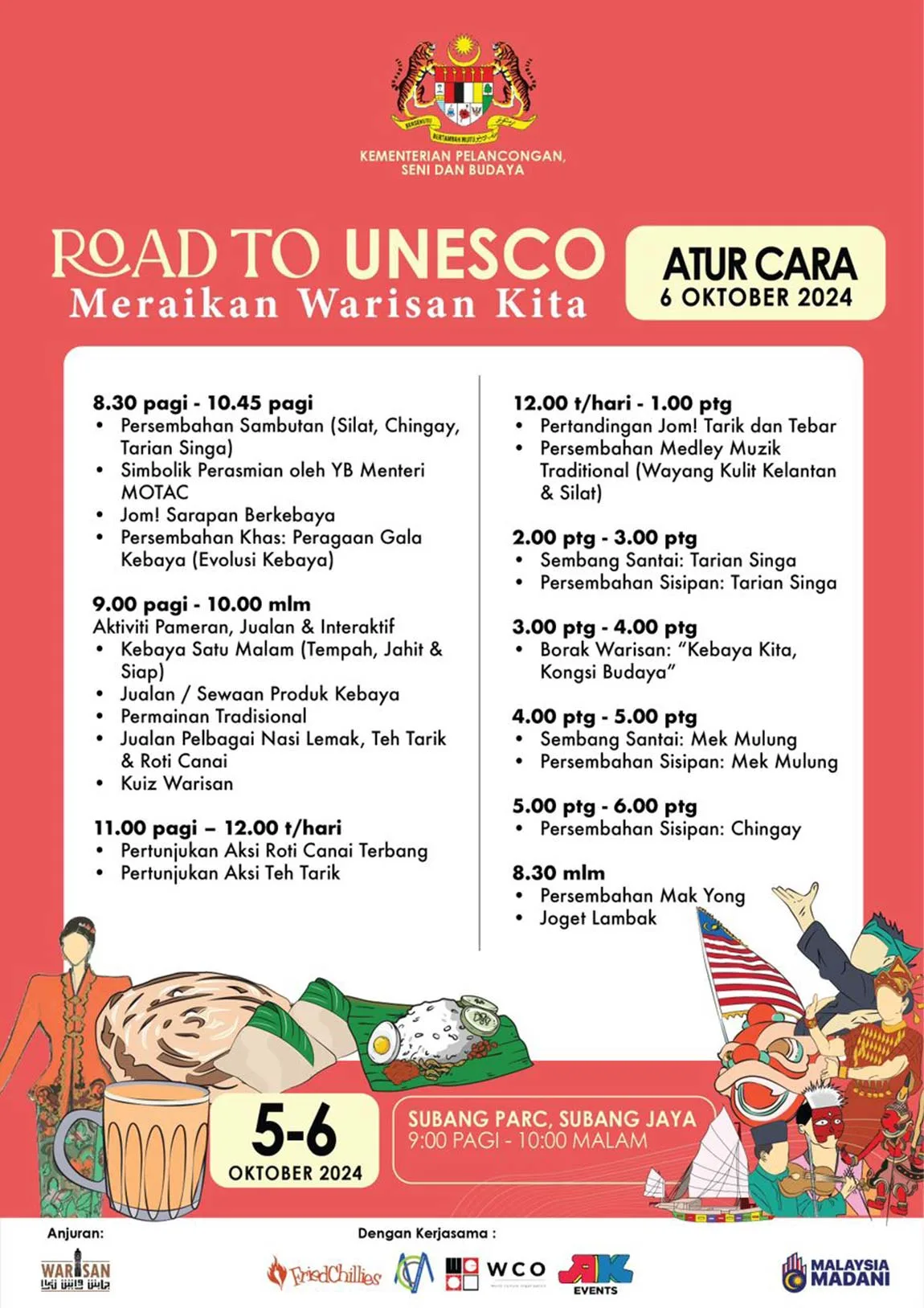 Dengan pelbagai aktiviti menarik dan pameran budaya, pengunjung dijanjikan dua hari penuh keseronokan. Berikut adalah senarai apa yang akan berlaku: