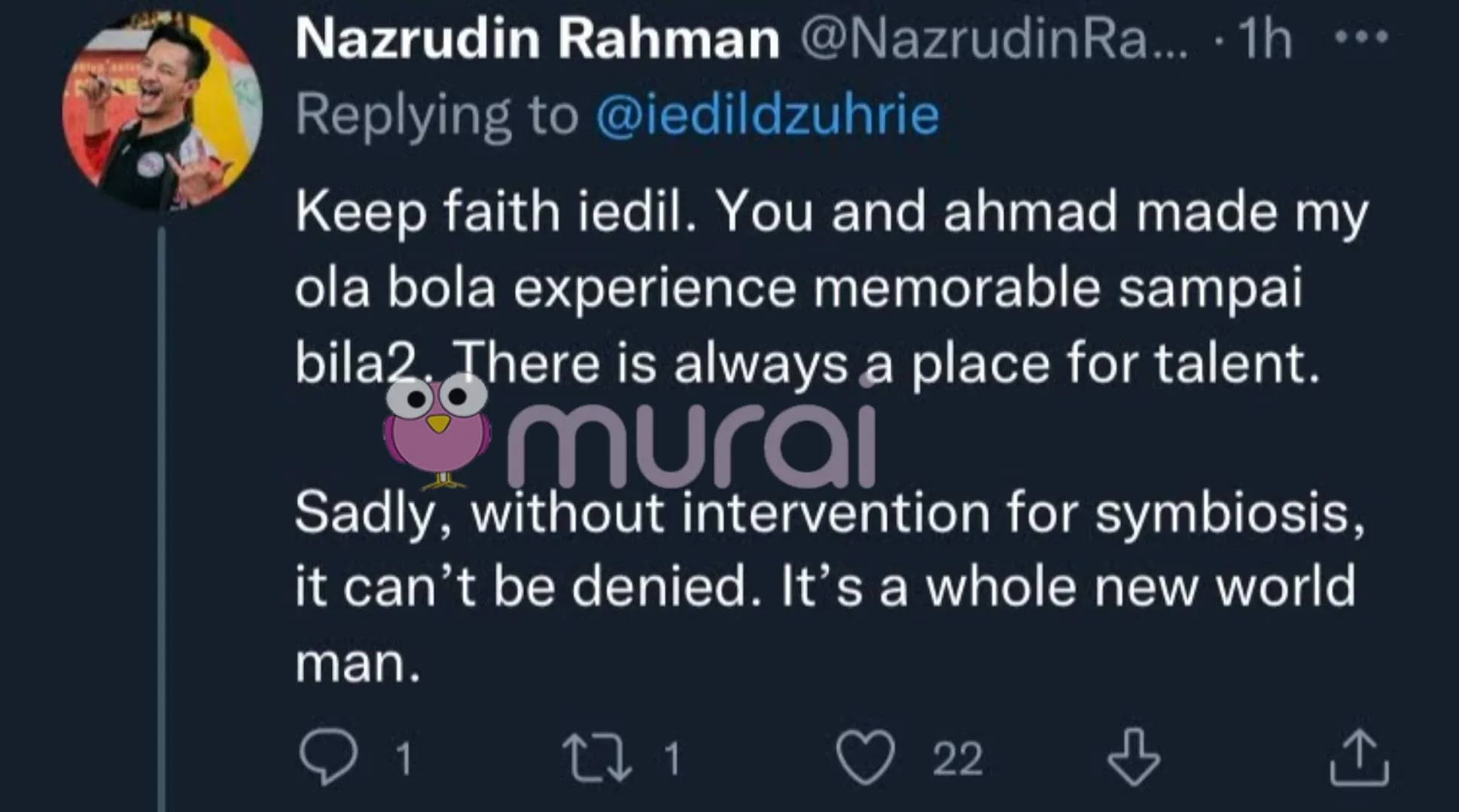 Sedihnya, tanpa campur tangan untuk keseluruhan simbiosis, ianya tidak dapat dinafikan. Ia adalah dunia yang baru.”-Komen Naz