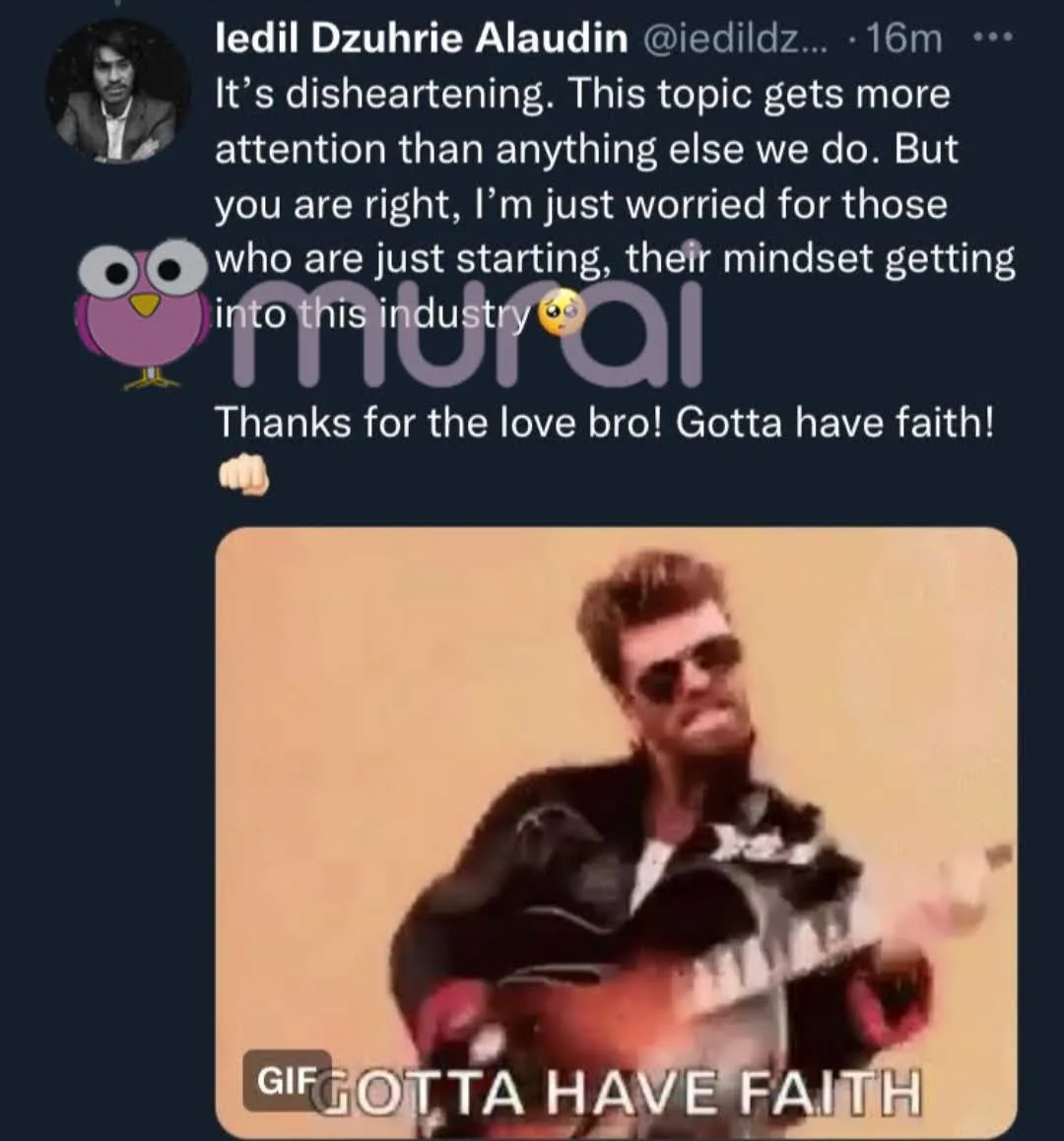 Tetapi anda benar. Saya cuma risau bagi mereka yang baru bermula, tanggapan mereka untuk melangkah masuk ke industri ini.”- katanya lagi