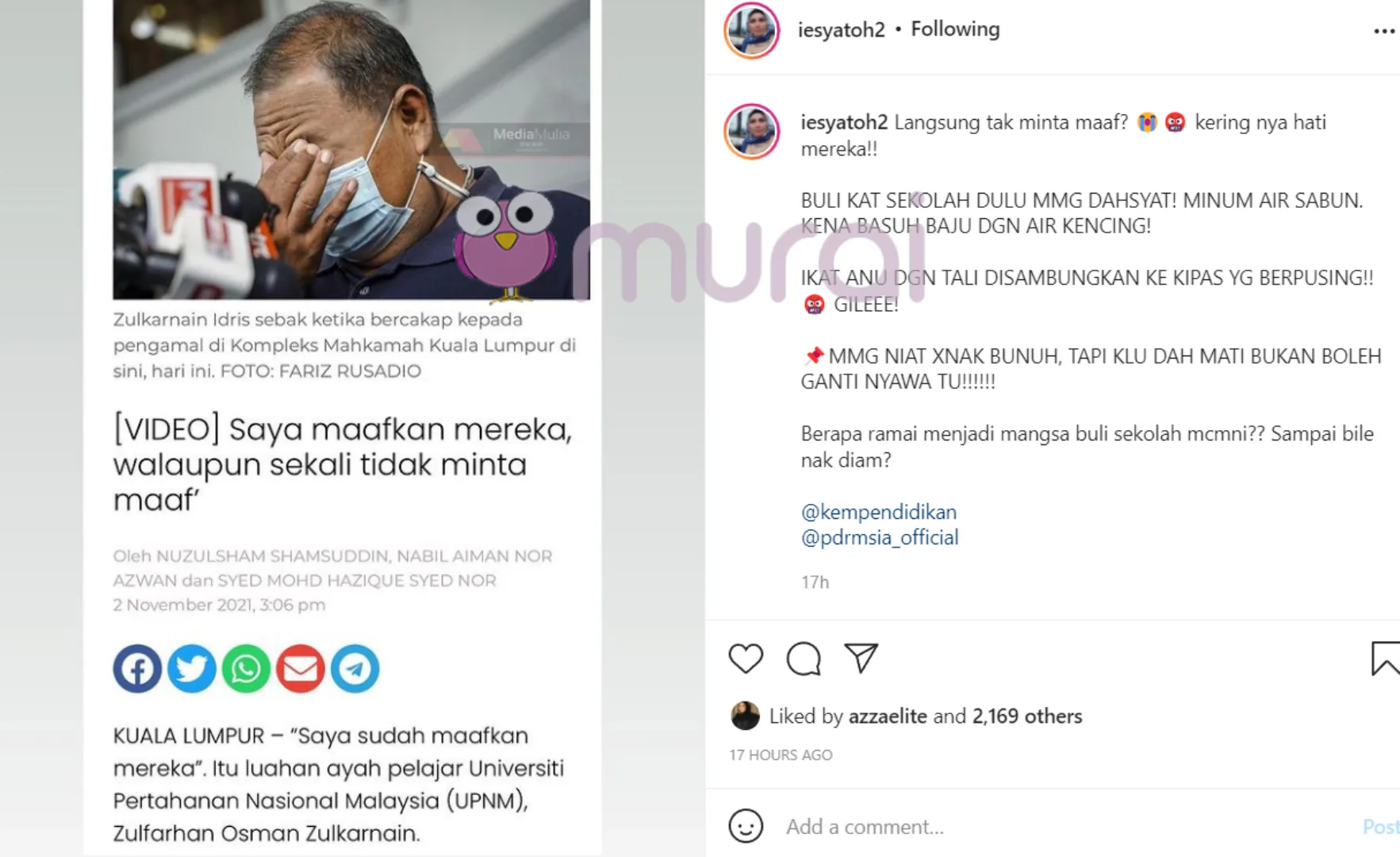 Kes bunuh Pegawai Kadet Laut Universiti Pertahanan Nasional Malaysia (UPNM) mendapat reaksi dari pelbagai pihak termasuklah pengacara, Iesya Toh.