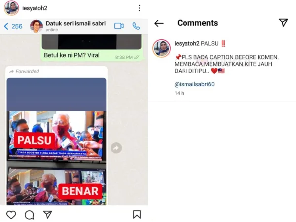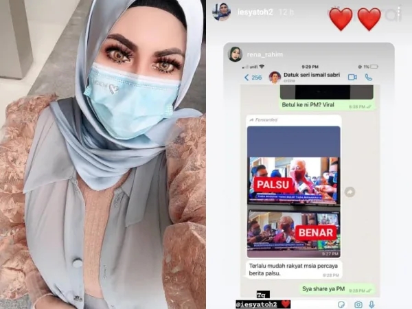 Iesya yang memuatnaik tangkap layar yang mengandungi imej berita Perdana Menteri yang sedang tular pada ketika ini, bersama kapsyen ringkas sebagai penjelasan di media sosialnya.