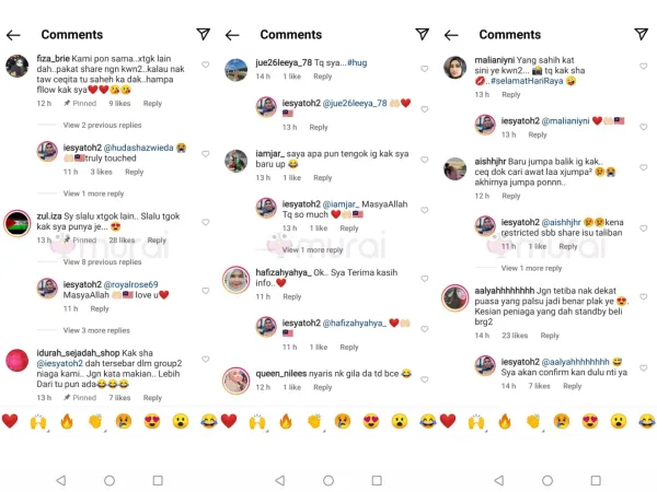“Yang sahih dekat sini ya kawan-kawan… Terima kasih kak Sha… #SelamatHariRaya” komen warganet