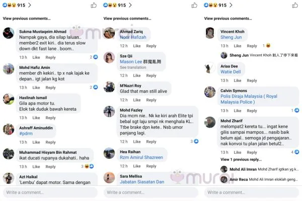 “Dia macam ni. Nak ke kiri arah ELITE tapi beb*l sangat laju sampai nak menghala ke Kuala Lumpur. Tetiba berhenti depan kereta. Nasib umur panjang.” Komen warganet