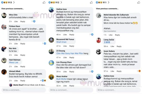 “Terlajak lah tu. Bod*h nak laju-laju. Nak konvoi tapi tak reti jalan, lepas tu gelabah takut kena tinggal dengan kawan-kawan.”