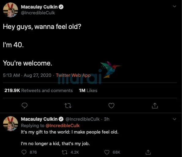 Pada hari ini, pelakon itu telah menyambut ulangtahun kelahirannya yang ke-40 tahun. Memandangkan ramai peminat yang terkejut, Culkin sempat berseloroh mengenai umurnya itu.