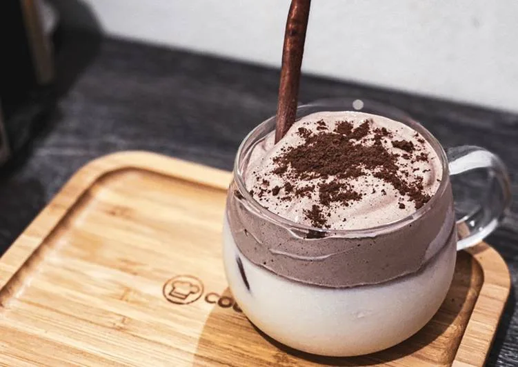 Cara Penyediaan: Pukul sehingga kembang serbuk koko, gula pasir dan air panas. Setelah itu masukkan krim untuk menjadikannya pekat dan sajikan bersama susu segar dan ais.