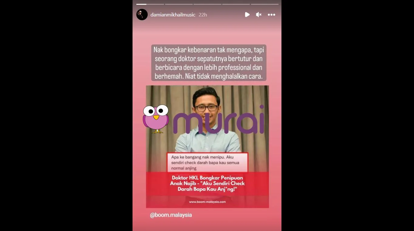 Tambah Damian lagi, niat yang ingin dilakukan oleh Doktor untuk membongkar penipuan anak najib ini solah-olah tidak kena pada tempatnya.