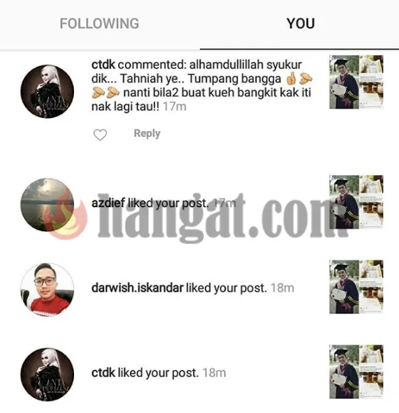 Bagi Ridzwan, pencapaiannya ini begitu bermakna dan turut didekasikan buat penyanyi kesayangannya itu. Siti yang turut bangga dengan pencapaiannya itu, merakamkan ucapan tahniah serta ingin lagi menempah kuih bangkit hasil air tangan dia dan ibunya. Untuk Ridzwan, tahniah kami ucapkan! Semoga kisah anda ini menjadi inspirasi buat masyarakat diluar sana.