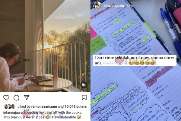 Bukan itu saja, baru ini Intan juga berkongsi nota tulisan tangan di Insta Stories nya yang mana dalam nota tersebut penuh dengan kotak berbentuk awan. Rupa-rupanya pelajar undang-undang ini mengatakan dirinya gemar melukis bentuk awan tiap kali menulis nota sejak zaman sekolah lagi.