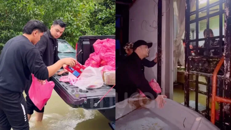 Usahawan kosmetik sensasi, Iqbal Zulkefli turun padang membantu mangsa banjir di Kelantan, semalam.