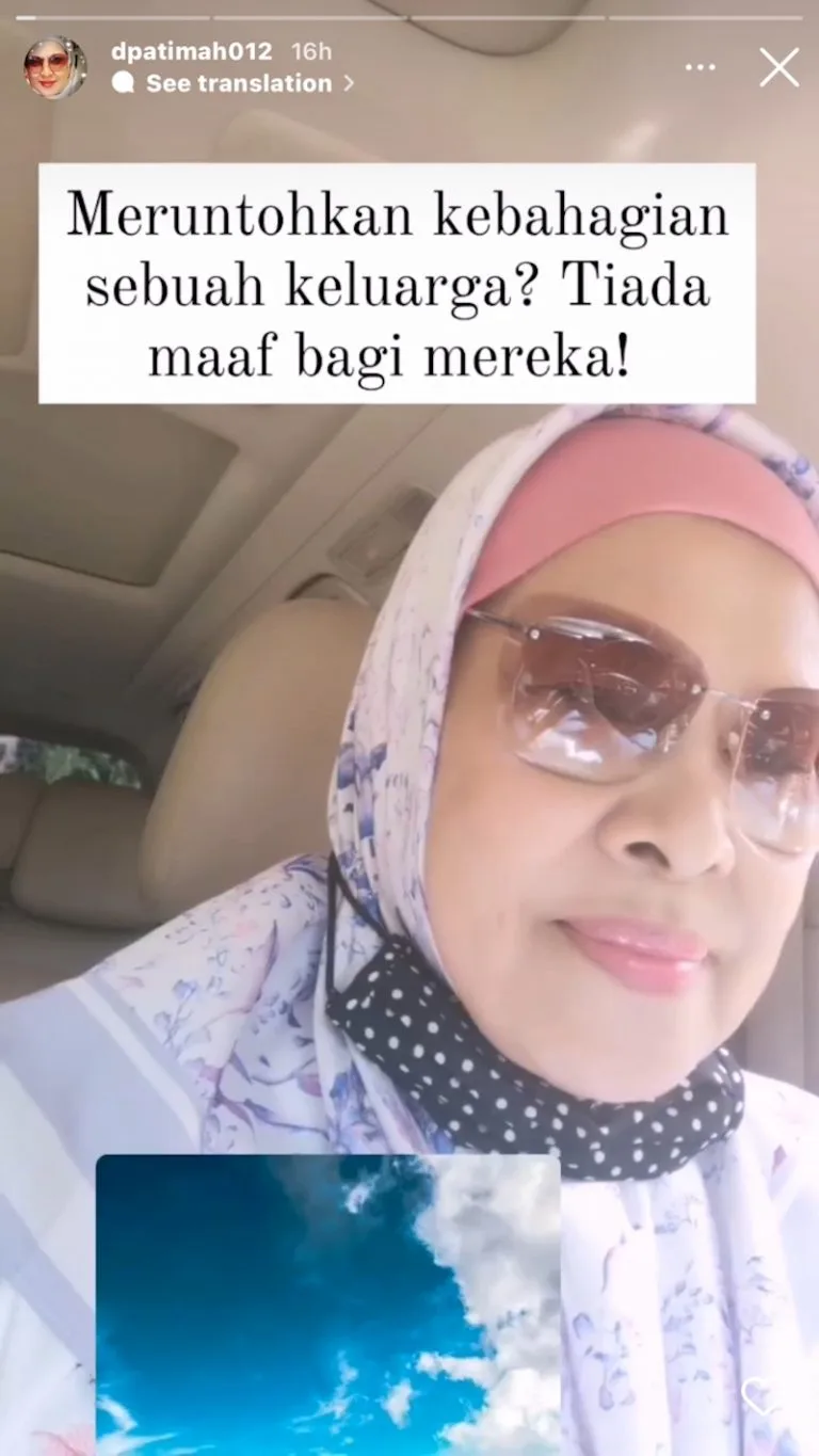 Terdahulu, Patimah menerusi Instagram meluahkan perasaan memohon Allah memberikan yang terbaik terhadap dua cucunya yang juga anak Syamsul.