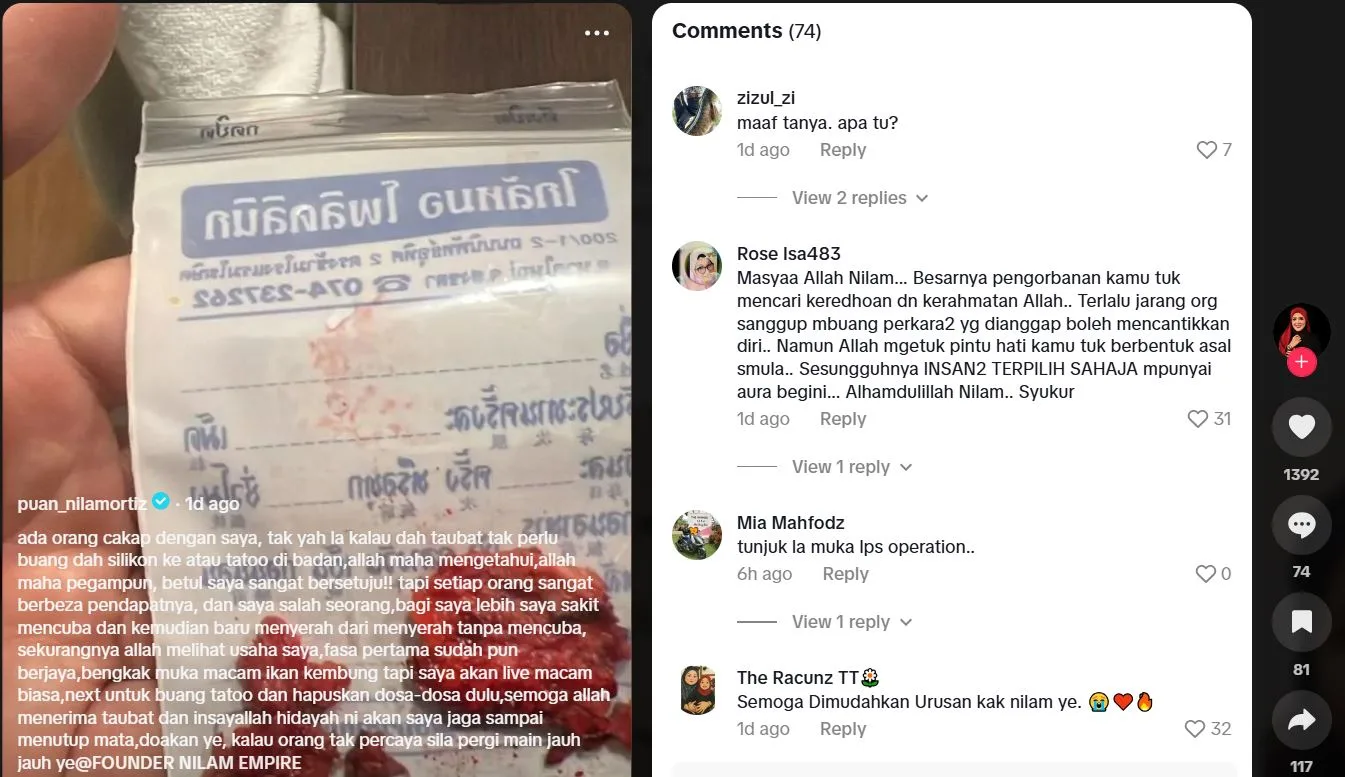 Walaupun ada yang mengatakan tidak perlu membuang silikon jika sudah bertaubat, Nilam tetap memilih untuk berusaha secara zahir sebagai tanda penyesalan yang mendalam.