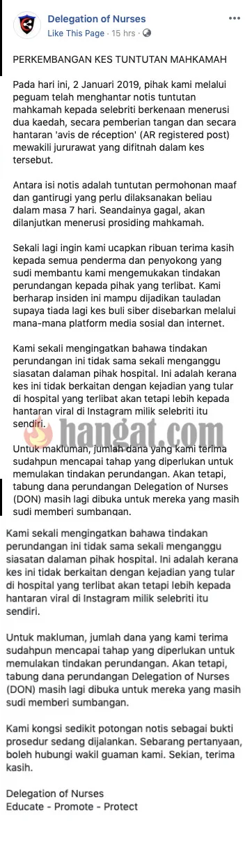 Terdahulu, Linda telah meluahkan rasa kesal dengan layanan buruk seorang jururawat hanya kerana ingin meminta mereka menukarkan cadar katil ibunya di sebuah hospital. Apa pun, kami mengharapkan yang terbaik dapat diselesaikan oleh kedua-dua belah pihak.