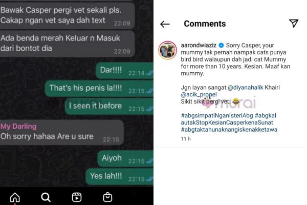 Aaron yang melihat kiriman mesej isterinya dalam mesej kumpulan terus memberitahu, bahawa benda yang dilihat oleh isterinya itu adalah zakar kucing tersebut. Aaron yang berasa lucu kerana hal tersebut memohon maaf kepada kucing mereka yang bernama Casper.