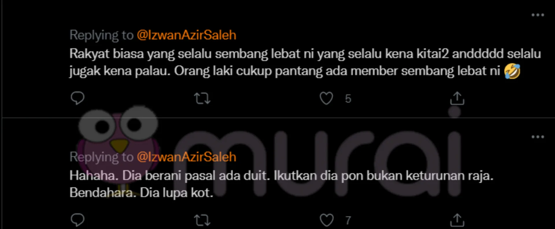 “Hahahha. Dia berani pasal ada duit. Ikutkan dia pun bukan keturunan raja. Bendahara. Dia lupa kot.”