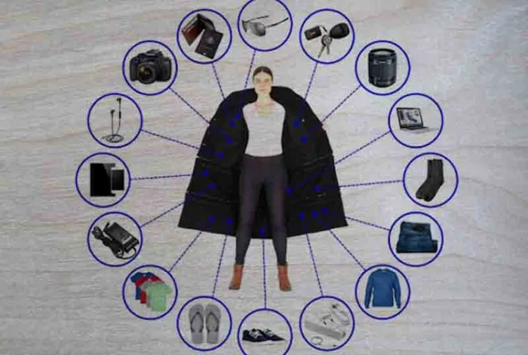 “Ketika memakainya, jaket ini mampu menyembunyikan 2 jenis komputer riba, iPad, dua pasang kasut, seluar jeans, 5 T-shirt dan sebuah kamera,” kata pereka jaket ini.