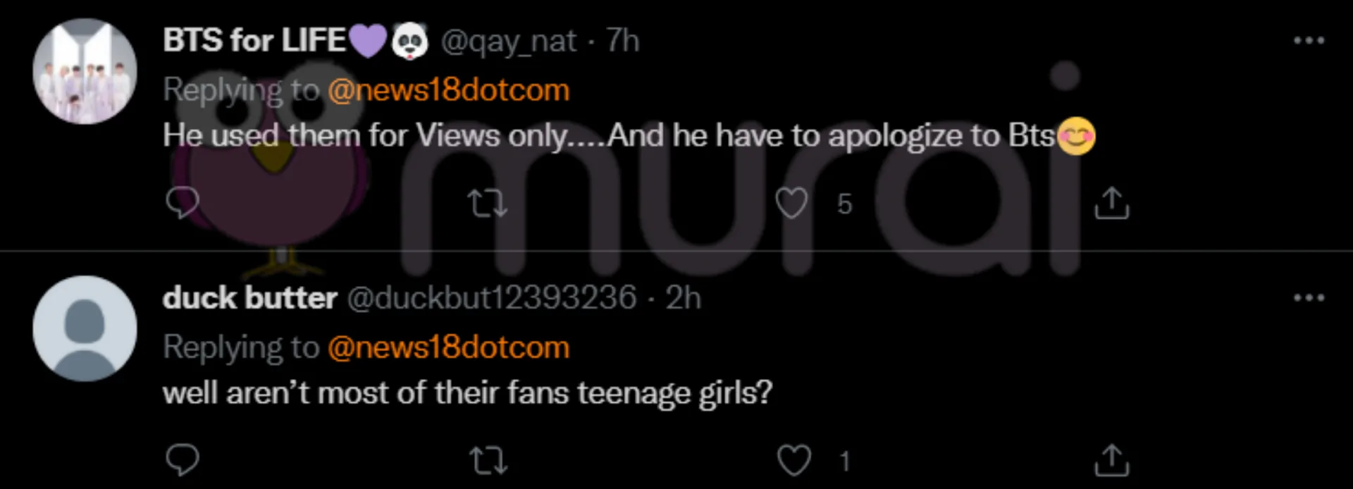 “Dia menggunakan mereka hanya untuk views sahaja…Dan dia harus meminta maaf pada BTS.”- ujar netizen